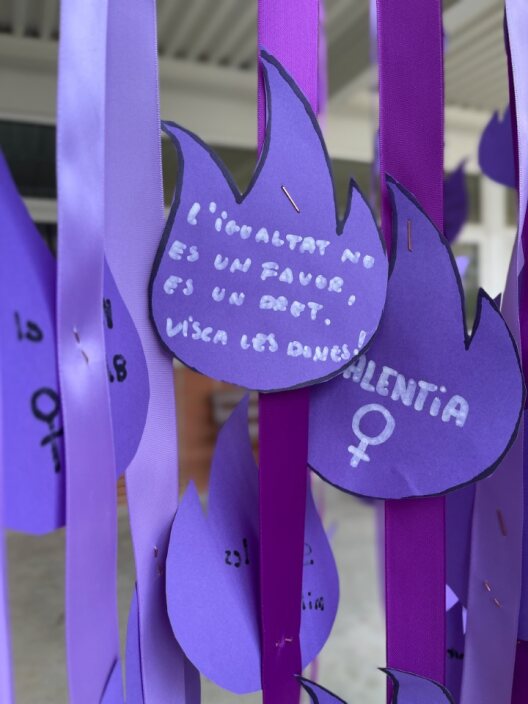 Al llarg del dia tota la comunitat educativa, alumnes, personal docent, administratiu, de cuina i neteja, i famílies, vam poder escriure missatges per reivindicar la plena igualtat, garantir els drets i les llibertats de totes les dones i plantar cara al patriarcat.