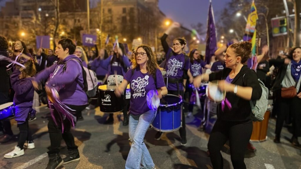 L’endemà les nenes i dones de la batucada de l’IE Vapor i Molí van participar, un any més, a la manifestació del 8-M que va recórrer el centre de Barcelona, formant part de #Sonadones.